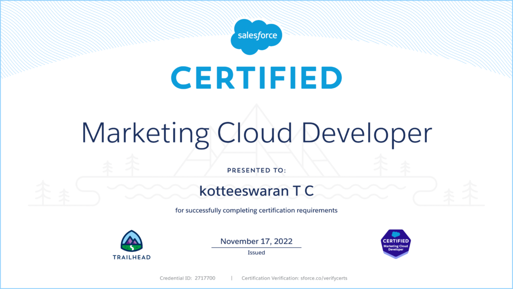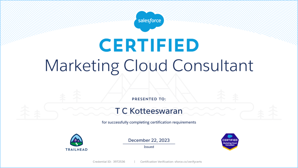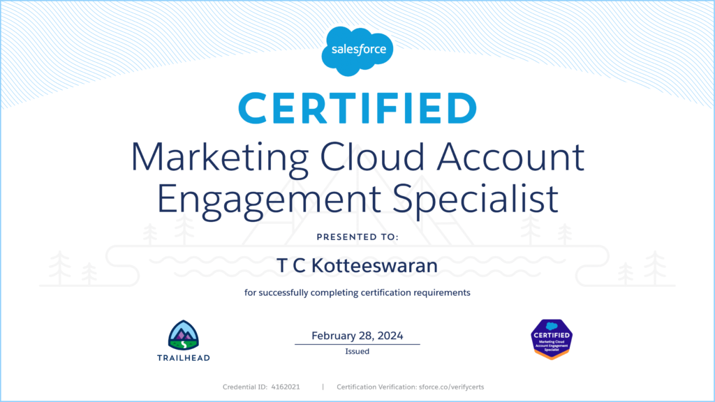 From Bangalore, India. I specialize in Salesforce Marketing Cloud, Data Cloud, and Pardot. With expertise in innovative marketing solutions and data-driven personalization, I craft exceptional customer journeys. Let’s connect to create something remarkable!